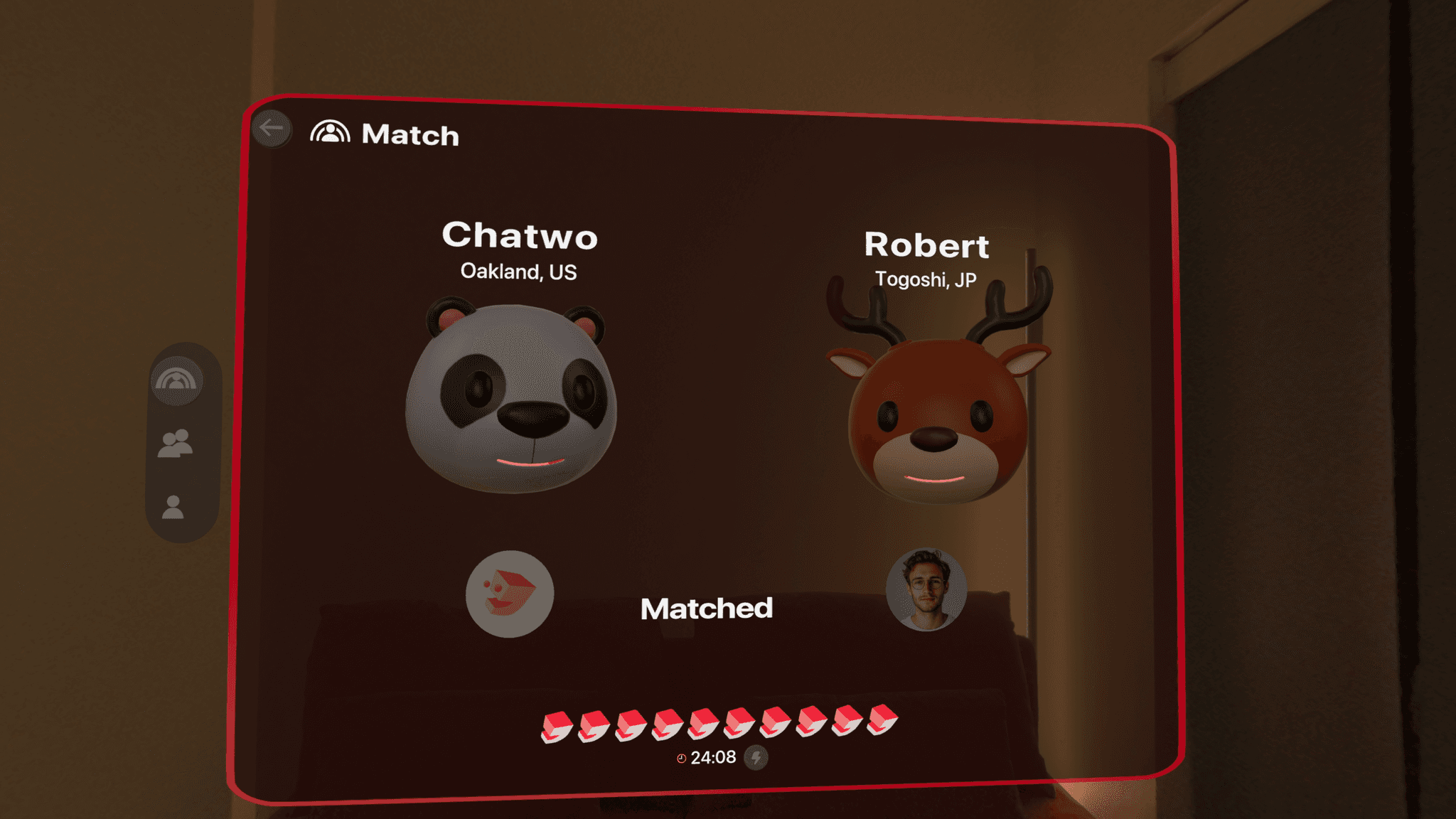 Chatwo is an 1-on-1 matching and chat platform powered by spatial computing, enabling immersive, real-time conversations in virtual spaces. Available on Apple Vision Pro.